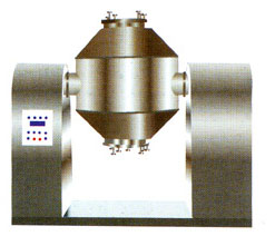 本機(jī)將粉末或粒狀物料通過真空輸送或人工加料到雙錐容器中,隨著容量的不斷旋轉(zhuǎn),物 料在容器中進(jìn)行復(fù) 雜的撞擊運(yùn)動(dòng),達(dá)到均勻的混合。