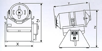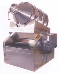 本機(jī)混合筒在傳動的同時又參與擺動,使筒中物料得以充分混合;旌贤驳某隽峡谄x混合筒圓筒部分的中心線,使該機(jī)具有混合迅速、混合量大,出料便捷等特點(diǎn)。