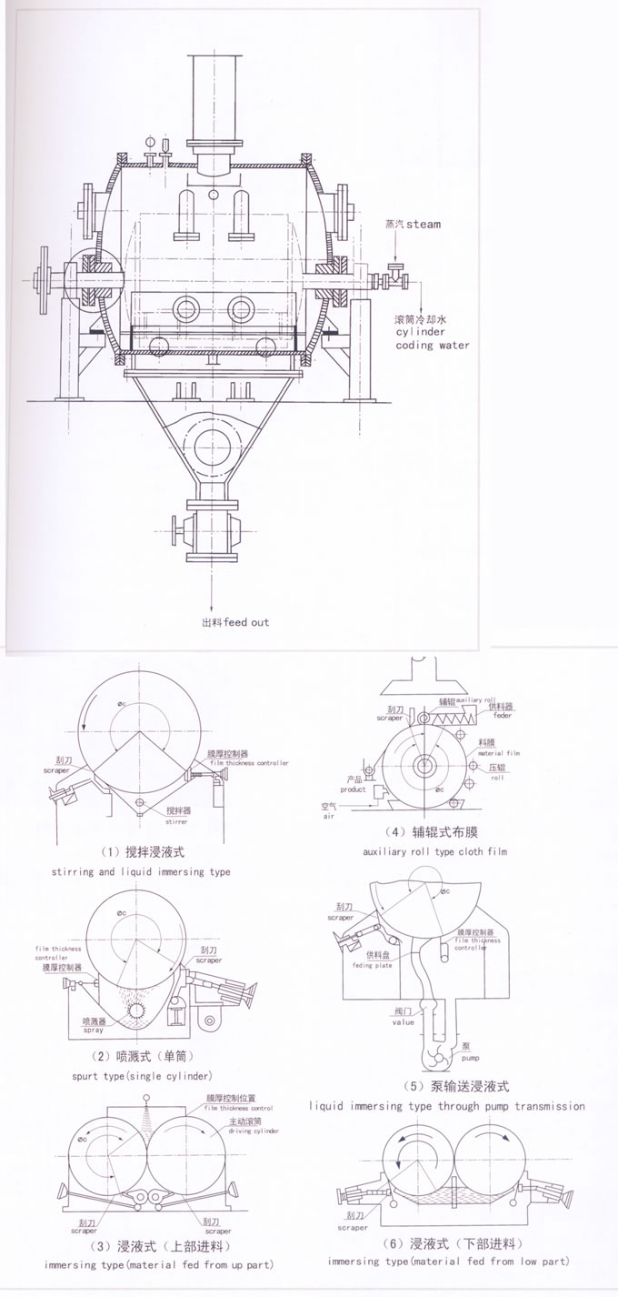 結(jié)構(gòu)形式 可分為二種形式:單筒,雙筒干燥機(jī),另外也可按操作壓力分常壓和減壓兩種形式。